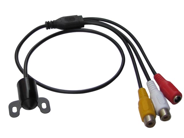 PIN1=>Red Power supply PIN2=>Black GND PIN3=>Yellow VIDEO OUT PIN4=> White AUDIO OUT |